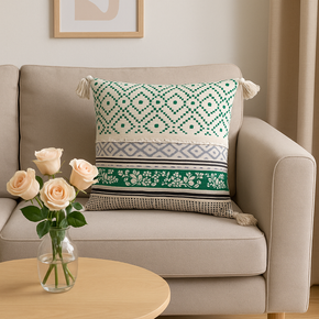 This cotton cushion cover features a classic check pattern in green, adding a touch of traditional charm to any living space. Made from high-quality cotton, it is soft and durable,...