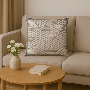 POLI SILK FABRIC EMBROIDED GEOMETRIC CUSHION POLI SILK FABRIC EMBROIDED GEOMETRIC CUSHION