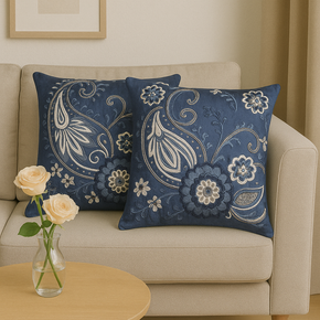 SELF PRINTED BLUE CUSHION COVER SELF PRINTED BLUE CUSHION COVER